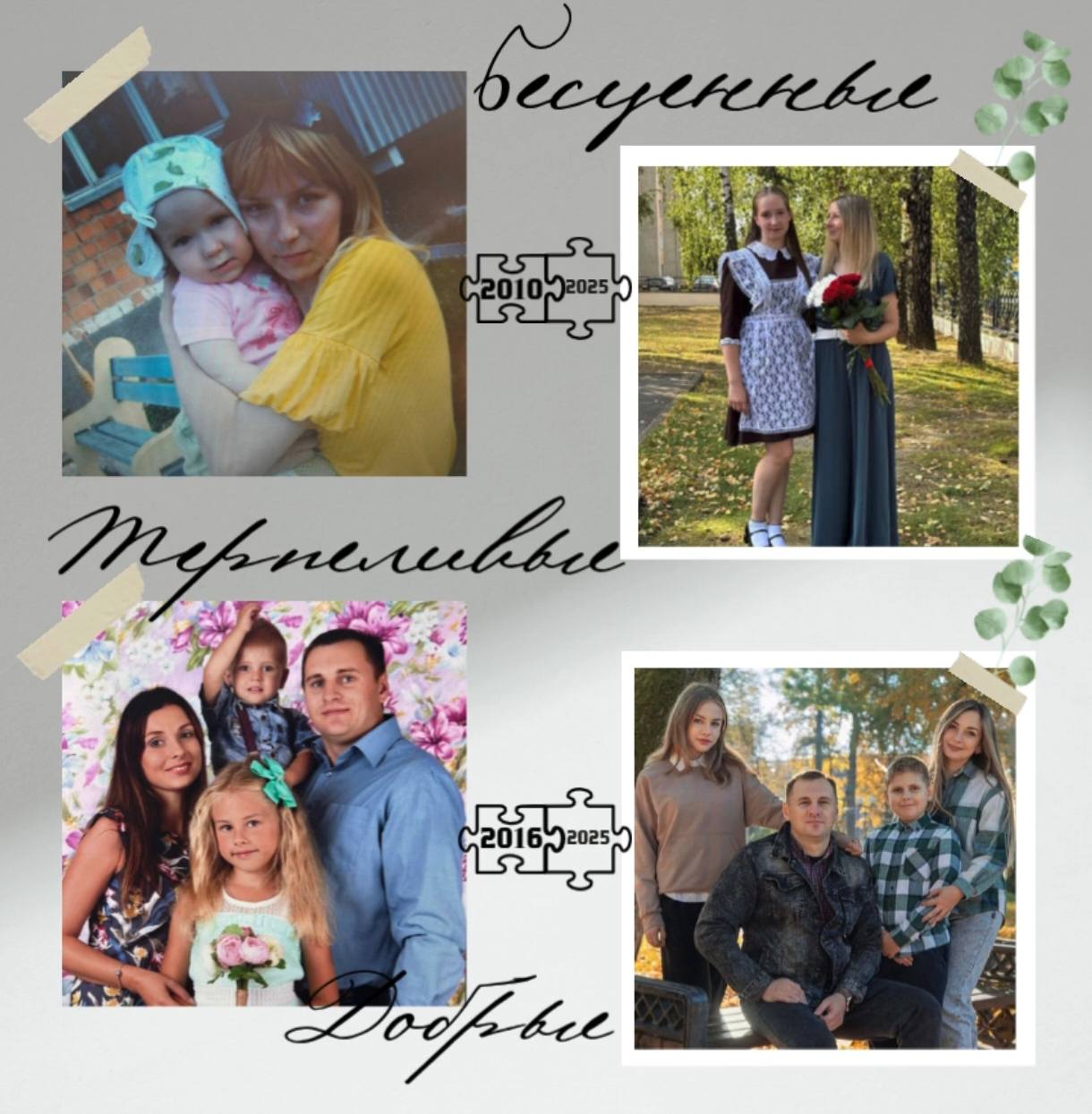 Чтобы совершить душевное путешествие в прошлое, ребята собрали фотографии со своими родителями, сделанные в разные периоды жизни, и сопоставили их с современными снимками.